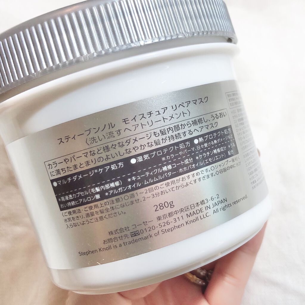 スティーブンノルニューヨークモイスチュアリペアマスク280g ¥1,980✼••┈┈••✼••┈┈••✼••┈┈••✼••┈┈••✼スペシャルケ用のヘアマスク。もったりとしたテクスチャーで、しっとり仕上がります。全体にのせるとやや重たくなるか...