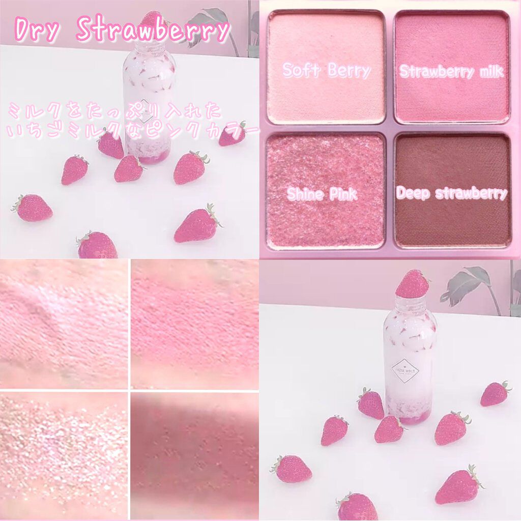 - 可愛いがあふれるドリームシャドウ ①肌に馴染みやすく使いやすい配色 ②クールメイクにピッタリな瞳を演出 ③なめらかで塗り心地の良いマットカラーが立体感を作る ④キラキラと輝く上品なまなざしを作るグリッター