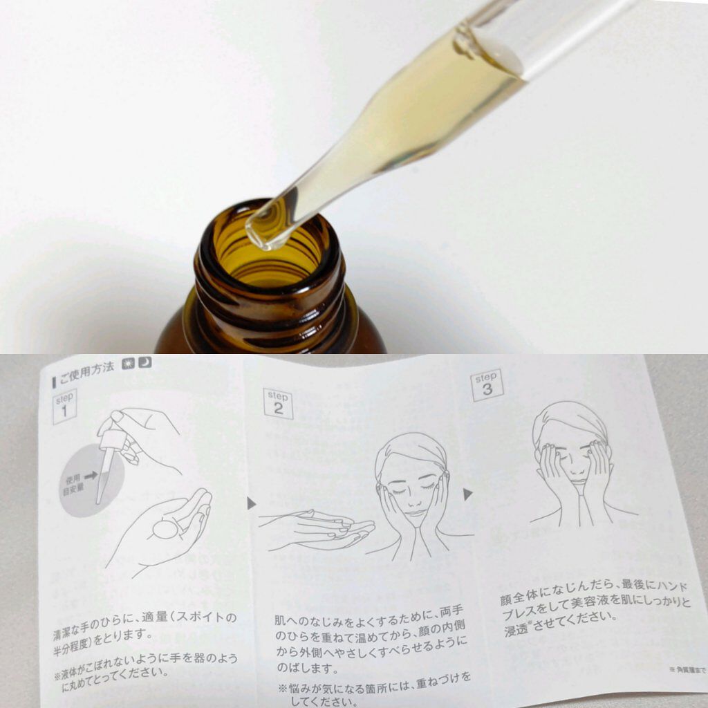 | スポイドで使いやすい程度の少しとろみがある透明美容液。伸びやかで、みずみずしいテクスチャーです。 | 詳細を見る | |