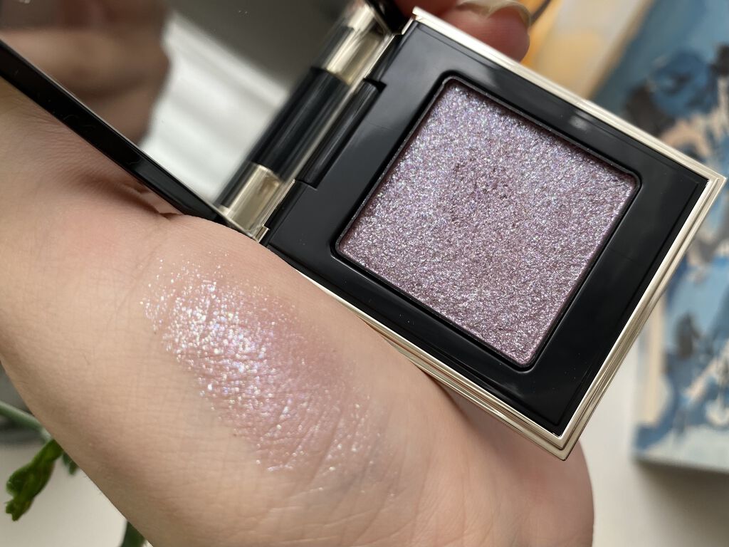 初SUQQUシャドウ・:*+.\((°ω°))/.:+トーンタッチアイズ108明雫<限定色>!笑っちゃうくらいキラキラ、ほんとに宝石を砕いたみたいなキラキラ具合こんなにギラギラしてるのにテクスチャがサラサラトゥルン…としてて驚いた。めっちゃ気...