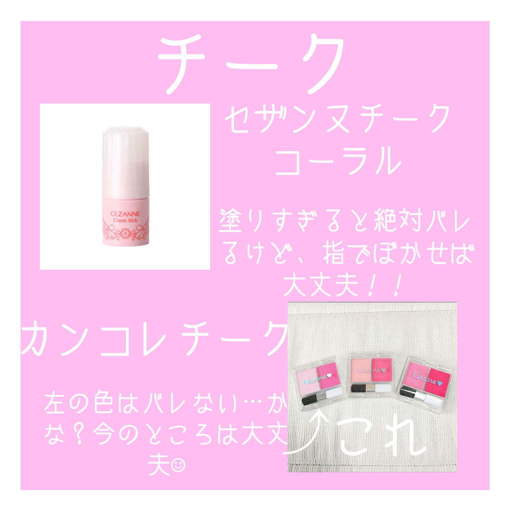 今日は、最近の学校メイクを紹介したいと思います❕前回と結構変わったと思うので画像だけでも見ていってください!1番…日焼け止めこれは定番ですよね!!小鼻と眉間も忘れずに顔全体に塗ってください!!2番…ベビーパウダーテカリを抑えると共にサラサラ肌...