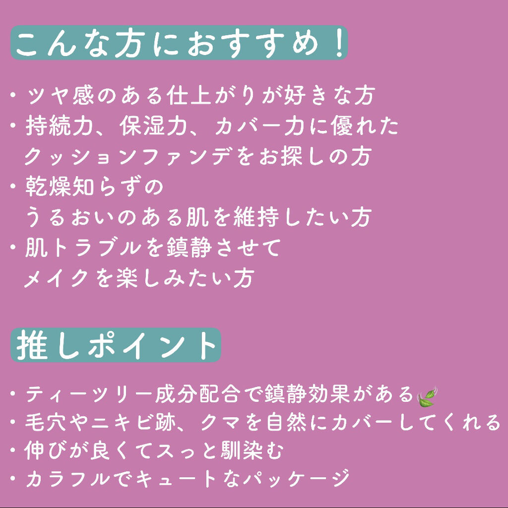 | クッションファンデーションランキング第142位 | このクッションは色味がピンクベージュなので、 血色感をだしたい方に、よりフィットします💖 | 詳細を見る |