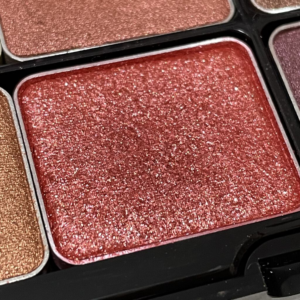 このアイシャドウ、ギラギラで上品さがたまらない! 1番上にTUしてるギラギラがとてもかわいい! 発色もめちゃくちゃいい!上品!!! 左上 → 涙袋 右上 → ベース 左下 → 二重幅 右下 → 締め色 とそれぞれきちんとした役割があるアイシャドウはめちゃくちゃ使いやすい✨✨ 特に3番目にTUしてる赤色。あれ赤色じゃないんですか……😇💦ほんのり赤みブラウンって感じ、、 完全にブラウン系のアイシャドウだと少しくすんでしまう私には使いこなせなさそうな感じ。薄づきだったらお仕事に使っても問題ないかな〜くらいです。