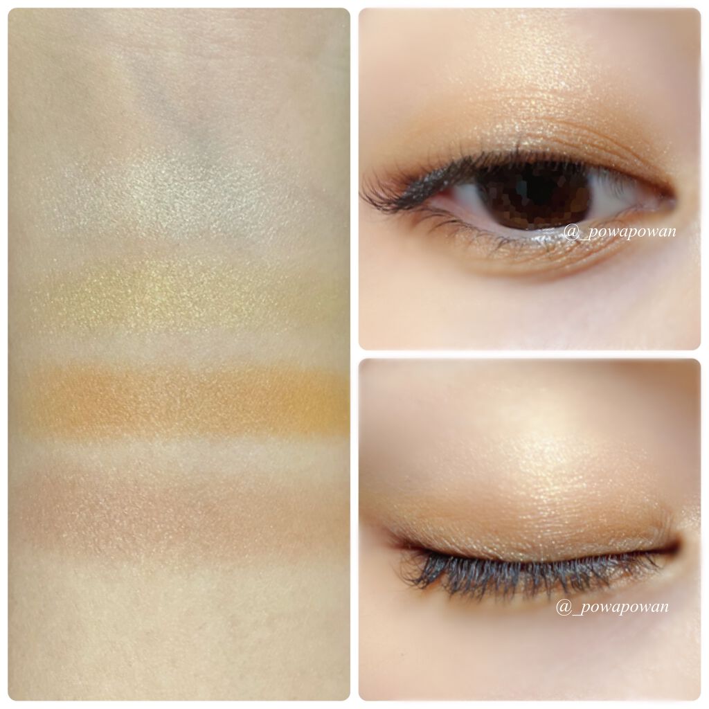 mude.の方がよりあたたかみのある印象で全体的に使いやすい色味が入っている感じ◎ ラメ感もギラギラするよりかは上品なキラキラ感✨ rom&ndはmude.に比べるとフレッシュな印象!春や夏に使うと映えそう❣️ ラメ感も強く、目立つかな。 似てるかもしれないからと買うのを長い間悩んでいましたが、仕上がりが全然変わってくるので、買って良かった😂❤️ 粉質はブランドも違うので違ったよ✨ rom&ndの方がしっとり感があって強く発色する感じ。 mude.は淡い発色で、初心者さんも使いやすいと思った🫶🏻