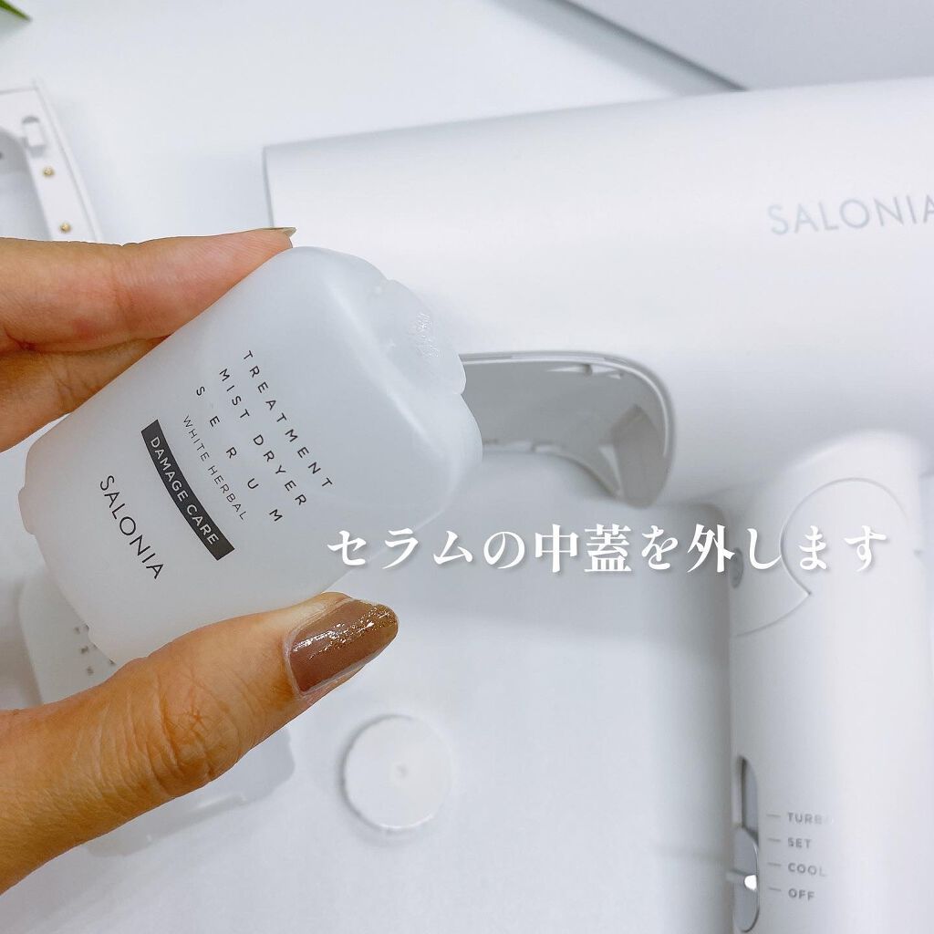 - 「美髪器」という、新発想※。見える美容液ミストで乾かしながら、トリートメント。 「乾かす」「潤う」を同時に叶える新ヘアケア体験。サロン帰りのようなうるツヤ髪へ。 ※ SALONIA内において。