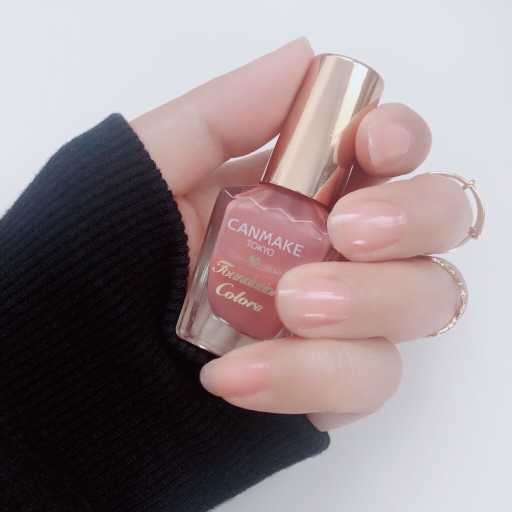 お上品なパールで可愛い☺️ 右からワンカラーのところは1~3度塗りで分けてみました! もっとお上品な感じになった☺️ オフィスネイルにもキレイめの服装にもぴったりです! ファンデーションネイル #キャンメイク #canmake #大人ネイル