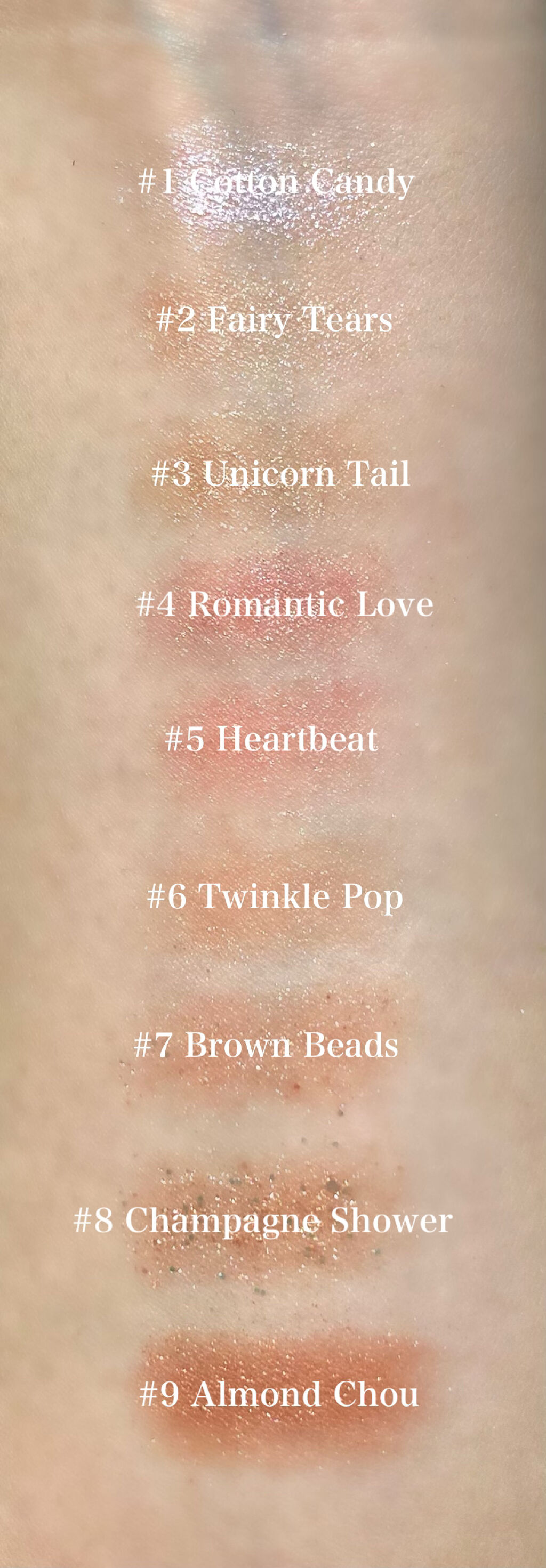 - <01 ピンクコーラル> タルク、カルシウムチタンボロシリケート、カルシウムアルミニウムボロシリケート カルシウムソジウムボロシリケート、マイカ、酸化チタン ジエチルヘキサン酸ネオペンチルグリコール、フェニルトリメチコン ミリスチン酸Mg、リンゴ酸ジイソステアリル、(ヒドロキシステアリン酸/ステアリン酸/ロジン酸)ジペンタエリスリチル アイソステアリルネオペンタノエート、オクチルドデシルステアロイルステアレート、マグネシウムステアレート、メチルプロパンジオール、ポリブテン、プロパンジオール、シリカ、合成フルオロフロゴパイト、ジメチコン、ラウロイルリシン、トリエトキシカプリリルシラン、水酸化アルミニウム、メチコン、カオリン、精製水、酸化スズ、赤色酸化鉄、グンジョウ、カルミン <02 シャインラッシュ> タルク、カルシウムチタンボロシリケート、カルシウムアルミニウムボロシリケート、トリエチルヘキサノイン、マイカ、合成フルオロフロゴパイト、酸化チタン、トリイソステアリン酸ポリグリセリル-2、シリカ、ミリスチン酸Mg、PCAイソステアリン酸PEG-30水添ヒマシ油、サラソウジュ種子脂、ステアリン酸Mg、メチルプロパンジオール、プロパンジオール、ジメチコン、カオリン、精製水、酸化スズ、赤色酸化鉄、グンジョウ、黄色酸化鉄、カルミン、黒色酸化鉄