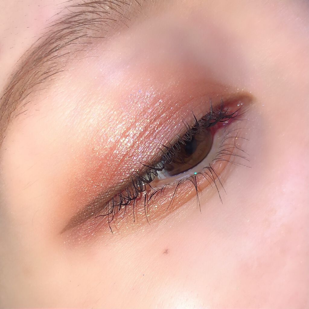よくパレットのなかで明るいカラーをベースにまぶたに広く塗ることが多いのですが、パール感のあるカラーを避ける🙆♀️! パール感たっぷりの明るいカラーは涙袋に使うぐらい光を集めてぷっくり見せてくれるので、まぶたに広く使うと腫れぼったく見えがち😓 目元を明るくみせてくれたり、次に使うアイシャドウをぼかしやすくしてくれるけど、すっ飛ばしてメインのカラーを塗っちゃう✊🏻❤️🔥 涙袋にはたっぷり塗ってぷっくり見せる🙆♀️💕 シルキースフレアイズのマットタイプはすごく優れているな〜と感じました☺️💗 赤やオレンジなどは、入れすぎると腫れぼったく見えやすいので、見せたいカラーは下まぶた目尻にのせて色をたのしむ♡♡ パール感なしの透けマットだけじゃ物足りない… そう感じさせない華やかなラメが左上に入っているので黒目上と涙袋にのせるとすごく可愛い仕上がりに😍! 厄介な左右差のお陰でマットアイシャドウが好きになりました😌💕