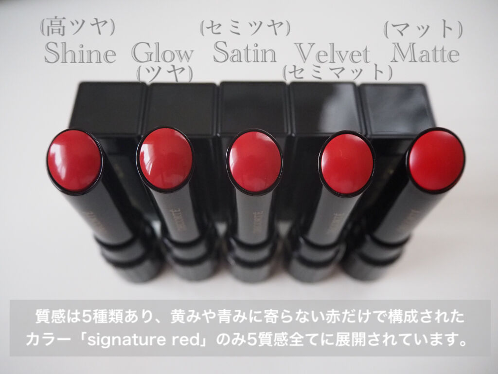 - 鮮やかな発色と艶やかなうるおいが続く、 5質感、51色のリップスティック。 スキンケアのカプセル技術を応用した2種のカプセル(ハイドロステイカプセル・カラーホールドカプセル)を配合。うるおいと彩りが心地よく続き、スキンケアで丁寧に仕立てられたような上質な唇をうみだすスキンケアルージュです。 5質感51色 5つの質感⇓ ・Shine(高ツヤ)タイプ 透明感と光に満ちた艶感のある仕上がり ・Glow(ツヤ)タイプ うるおいに満ちた濡れ艶感のある仕上がり ・Satin(セミツヤ)タイプ 質なうるおいと唇本来の艶感のある仕上がり ・Velvet(セミマット)タイプ やわらかなうるおいを抱えたソフトマットな仕上がり ・Matte(マット)タイプ 光をはらんだようなパウダリーマットな仕上がり