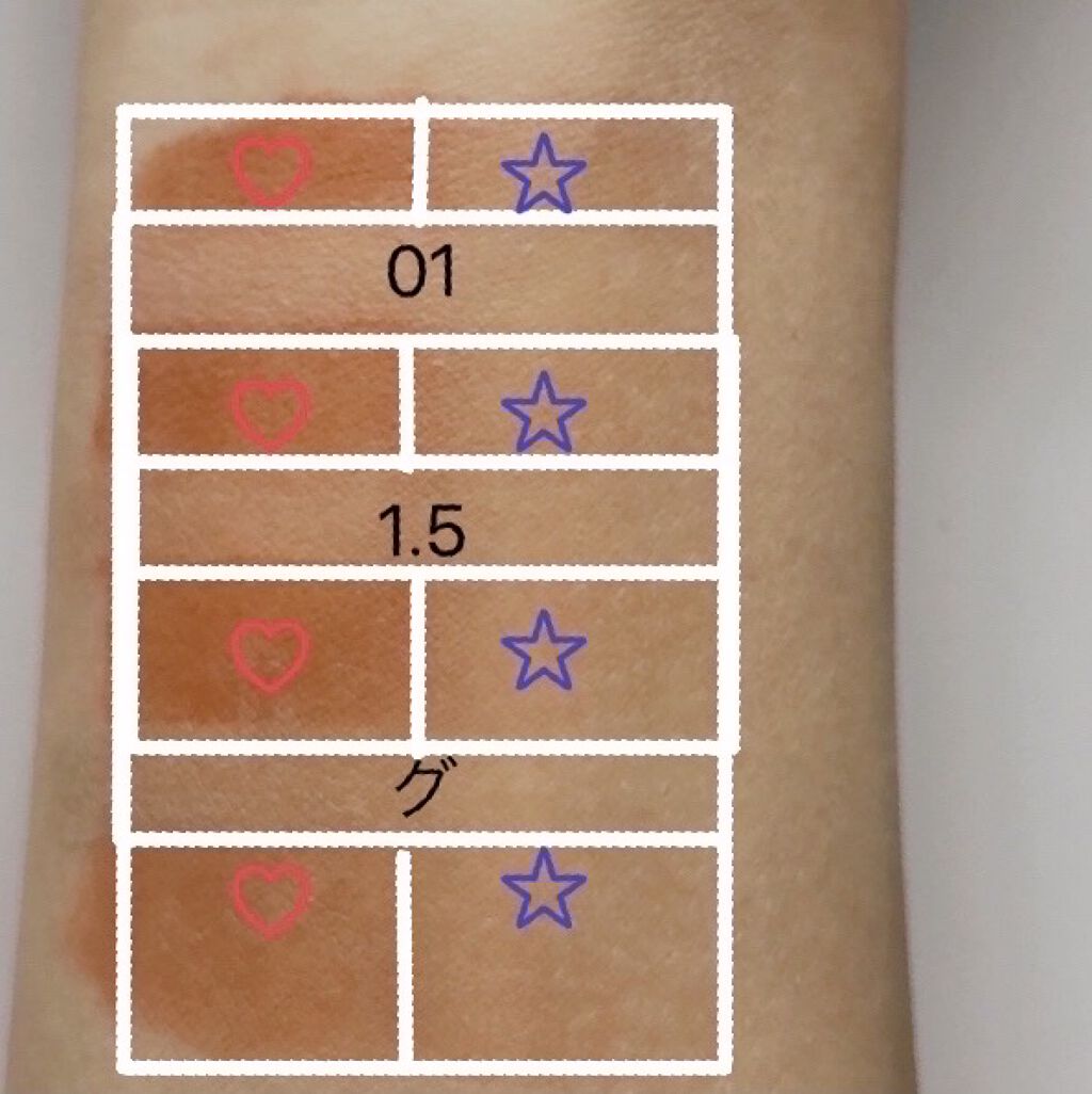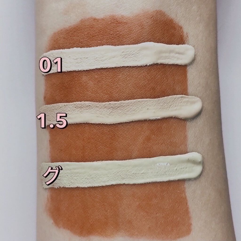 この2色パッケージで見るとよく似ているんですが肌に塗ってみたら明らかに違った!笑 そしてどちらも私の肌色になじむかも! ・01クリアベージュは基本的に顔のベース部分に合う色味。毛穴が、消え…て、る……😳??! チップなので塗りやすいですし、量の調整がしやすいかなと。