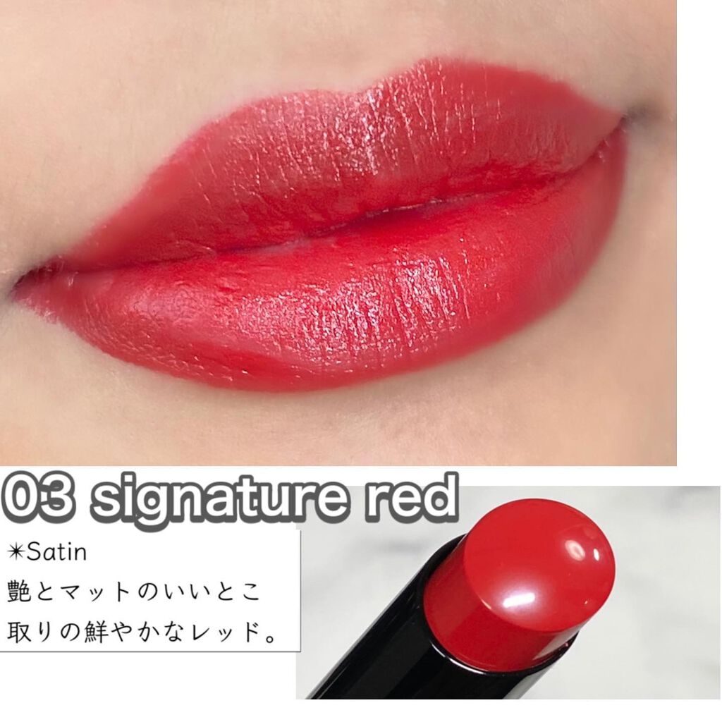 - 鮮やかな発色と艶やかなうるおいが続く、 5質感、51色のリップスティック。 スキンケアのカプセル技術を応用した2種のカプセル(ハイドロステイカプセル・カラーホールドカプセル)を配合。うるおいと彩りが心地よく続き、スキンケアで丁寧に仕立てられたような上質な唇をうみだすスキンケアルージュです。 5質感51色 5つの質感⇓ ・Shine(高ツヤ)タイプ 透明感と光に満ちた艶感のある仕上がり ・Glow(ツヤ)タイプ うるおいに満ちた濡れ艶感のある仕上がり ・Satin(セミツヤ)タイプ 質なうるおいと唇本来の艶感のある仕上がり ・Velvet(セミマット)タイプ やわらかなうるおいを抱えたソフトマットな仕上がり ・Matte(マット)タイプ 光をはらんだようなパウダリーマットな仕上がり