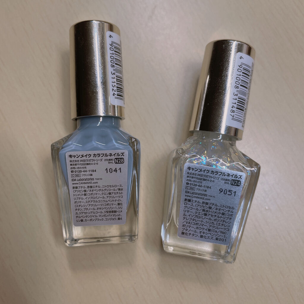 ずっと欲しかったスモーキーアクアを購入𓂃𓈒𓂂 淡い青で色味が可愛すぎる…🤦♀️💙 そして上からトゥインクルドロップを重ねてみました!キラッキラで可愛い〜🌟 No.100のトゥインクルドロップは色は無くキラキラのみなのでどの色にも合わせやすいと思います❤︎