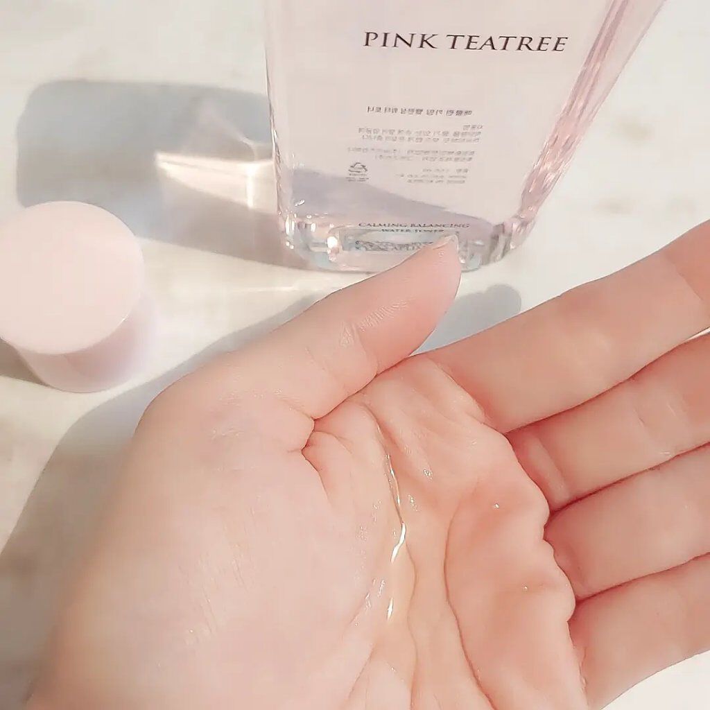 ピンクティーツリーとシカ成分によりニキビなどの荒れた肌をケア・予防☝️ このピンク色はビタミンB12成分の色です! さっぱりとしたシャバシャバテクスチャー。甘くフローラルな香りがします💐 たっぷり使ってお肌にうるおい補給を🫧 パケに中身までピンクで可愛いです🥹🎀