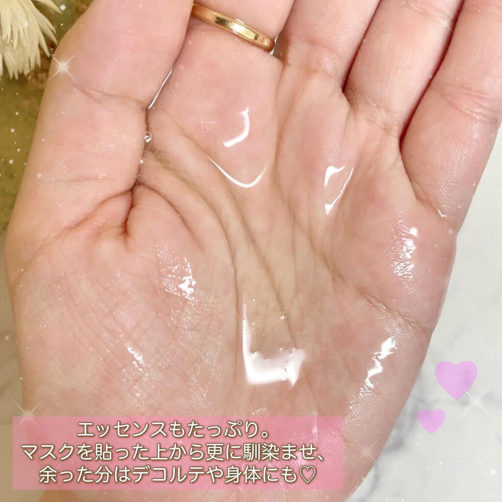 | 美容液はシートからあふれるほどひたひたです。 残った美容液はデコルテや腕に使ってます。 | 詳細を見る | |