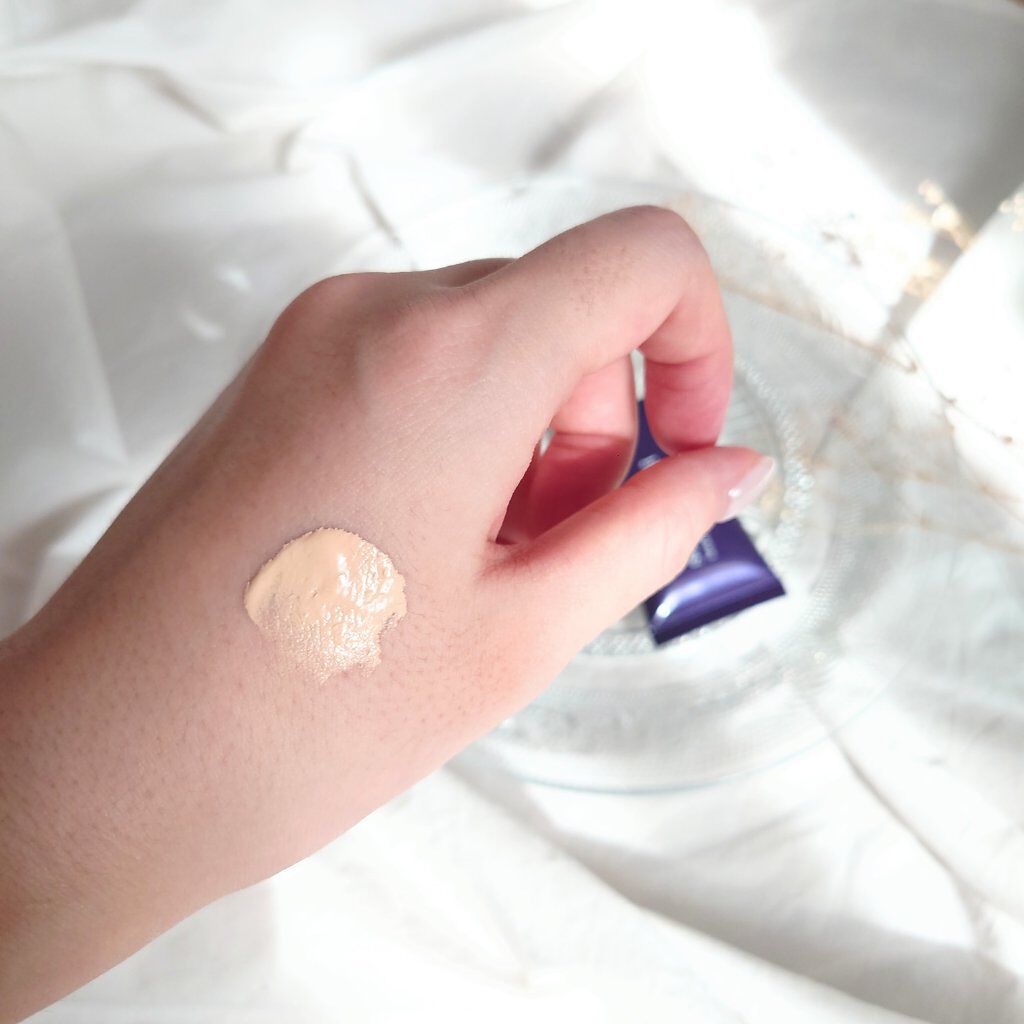 のびが良くてしっとりしてるのにベタつきません。 うっすらフレッシュフローラルブーケの香りがして気分がいいです🌼 01ナチュラルタイプは、肌なじみが良く誰でも使いやすいです。