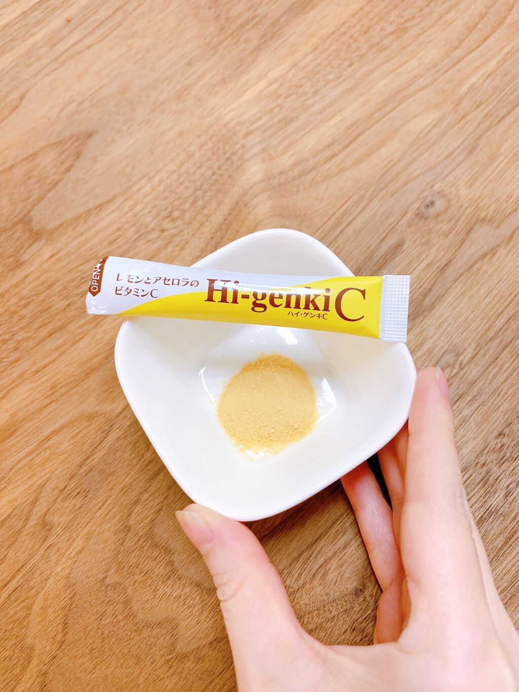 「ハイ・ゲンキ」の玄米酵素で有名な株式会社玄米酵素様の「ハイ・ゲンキC」 - ̗̀🍋 ̖́- ゆらぎやストレス、バリア機能をアップさせたい方におすすめのアイテムです🧃🌟 ハイ・ゲンキCに含まれるビタミンCはアセロラとレモンから作られた植物素材由来のものを使用しており、なんと化学合成されたビタミンCは不使用😳😳 サラサラした顆粒タイプで、口の中でサッと溶けるから凄く飲みやすい‼️ お味は穀物(玄米)のまろやかな風味とレモンの様な柑橘系の爽やかな風味が一緒になった感じ。