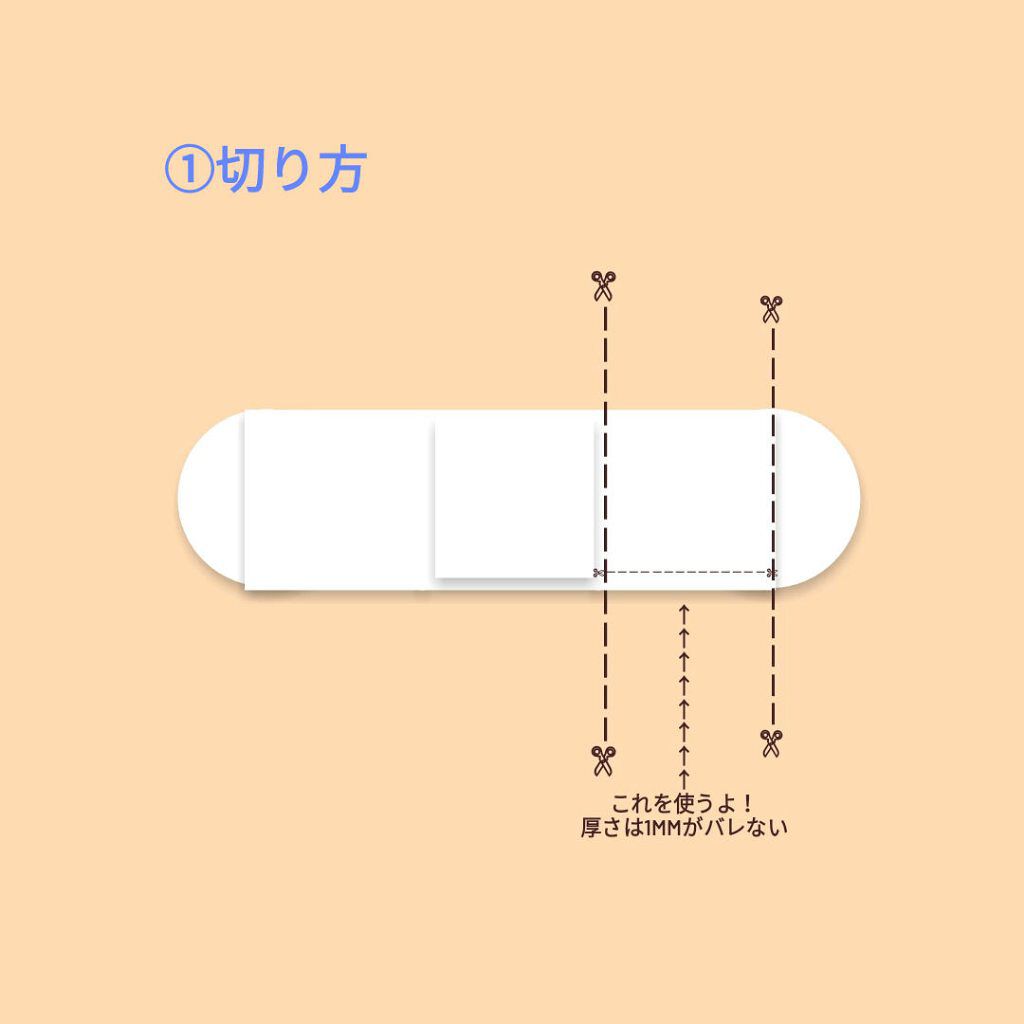 ①なりたい二重ラインに合わせて、目頭よりの方を半分貼る。