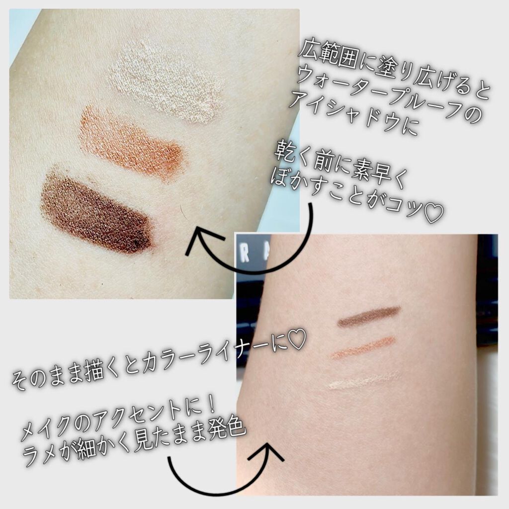 とてもスルスルと描きやすく ウォータープルーフなので落ちにくく 擦れに強くしっかり発色するが◎ マットタイプ、ラメタイプとあり好みで使い分けできカラバリも多く プチプラなので何本持ってても 色んなアイメイクを楽しめます💓