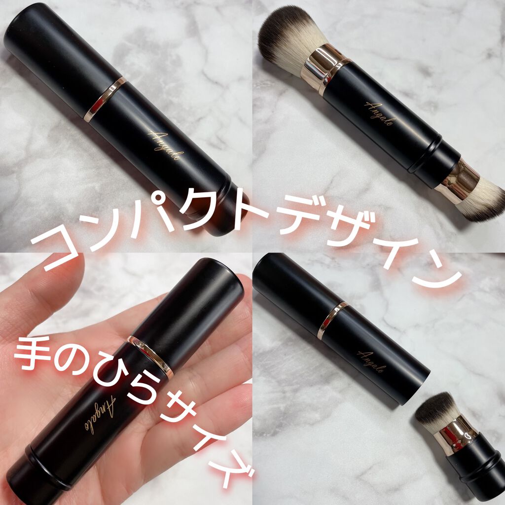 ◆1本で6役をこなすメイクブラシ。 穂先が丸い方は… ・フェイスパウダー ・チーク ・ハイライト 穂先が斜めの方は… ・パウダーファンデーション ・リキッドファンデーション ・シェーディング ◆それぞれのブラシの特徴として… (穂先が丸い方) 柔らかくてたっぷりの毛量で粉含みがよい。 (穂先が斜めの方) 弾力があり高密度で細かい部分にフィット。 高級タクロン100%使用でお肌が弱い方や 初心者でも扱いやすい。 耐久性に優れた素材なので洗って何度でも使用可能。 なんといってもこのコンパクトさ! 朝バタバタで仕事先でメイク… 出先などでのお直ししたい時… こんな便利なブラシ待ってました!🤩 常時ポーチに入れています✨ 毛量がしっかりしてるので テクニックなしでキレイに仕上がっちゃいます! こう見えて メイクにブラシは必須なんです、私🤭 大小どちらのブラシをどこに使わなきゃいけない 決まりはないので自由に使っていいと思います✨ お直しする時は小さい方が使うことが多いかも🤭