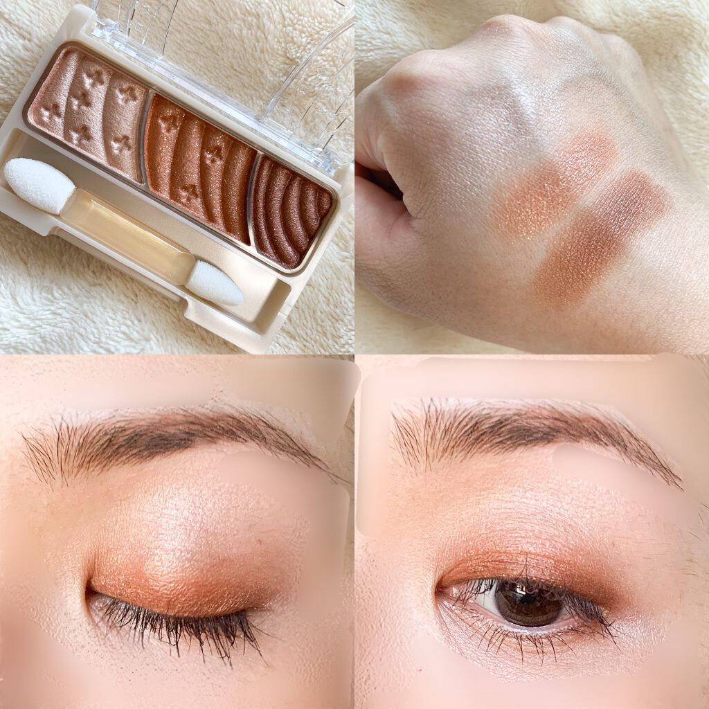 - 3色で簡単に明るく大きな目元に。 しっとり感触のアイシャドウ。 くすみを飛ばす明るさベース、ひとえ・奥二重の方でも幅広く塗れる肌なじみの良い中間色、 濃密高発色の締め色が目の輪郭を強調し大きな目元に。 微細パール配合でくすみを飛ばし、明るい目元へ。