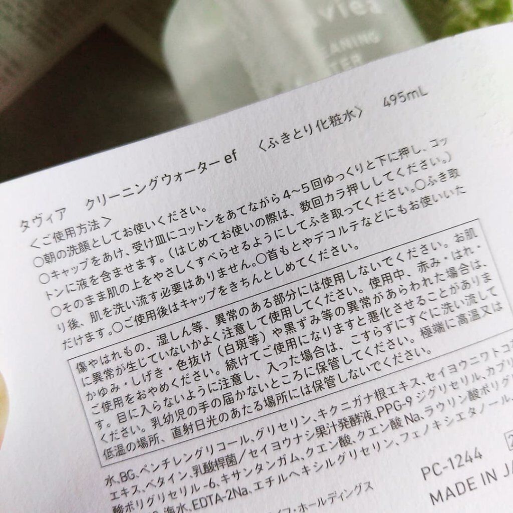 商品詳細情報タヴィア クリーニングウォーター ef/of