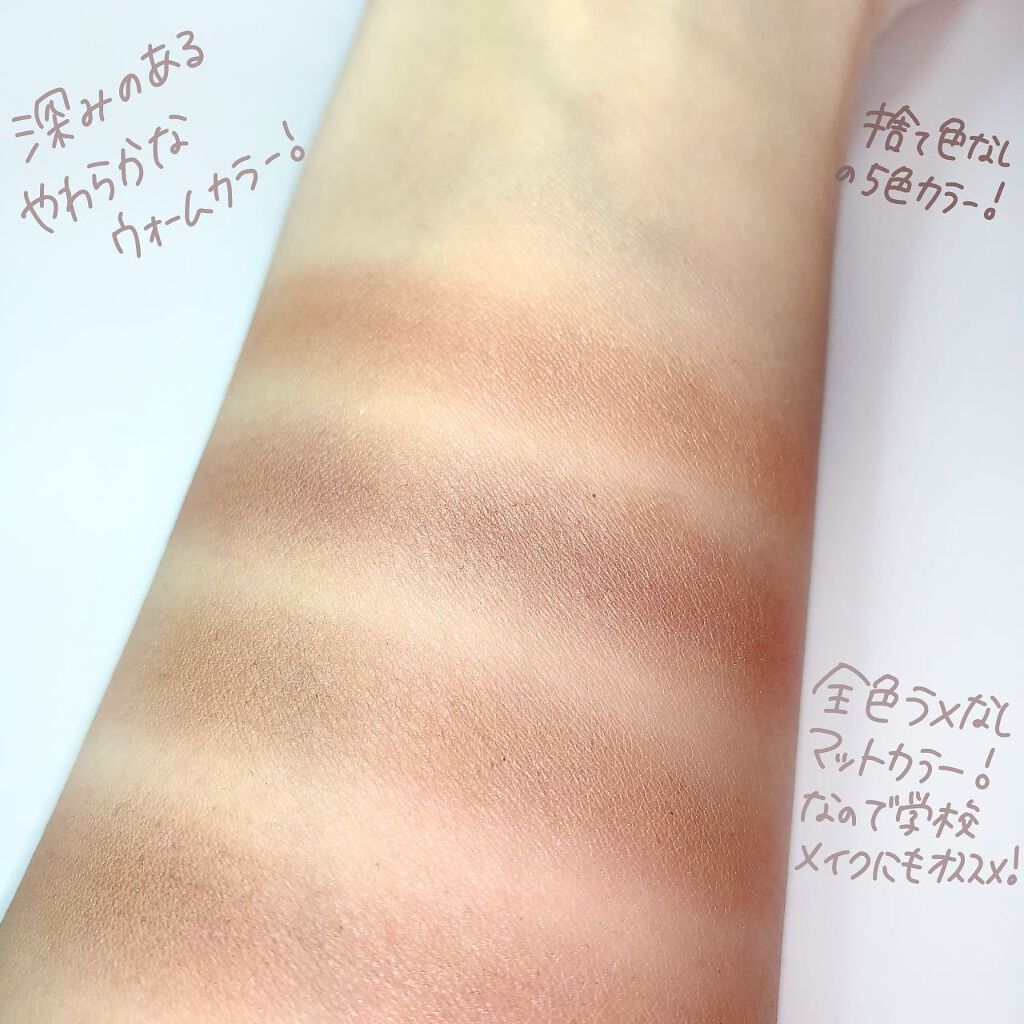 - アイメイク、これ1つで完了❤ アイシャドウ・アイブロウ・アイライナーとマルチに使える ラメなしマットな5色入りアイシャドウパレット 肌にとけ込むやわらかな陰影で、愛らしいナチュラルでか目に。 明度の違う同系色ブラウンで構成されたパレットなので、きれいなグラデーションが簡単に完成。 ナチュラルメイク派、学校・会社メイクにもぴったり! 撥水効果のあるオイルを配合することで、キレイが長持ちします。