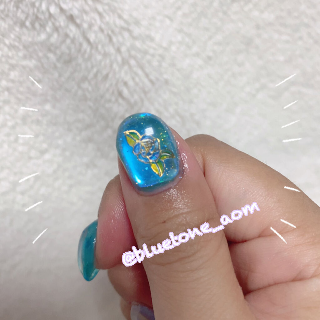 ラメがしっかりしてるし クリアカラーが入ってるから オーロラパウダー無しでも 充分キラキラしました! 反射強めのフィルムなので 実物はもっと うるうるとキラキラが強いです! ビー玉みたい🥺 ネイルシール長持ちさせたいけど ちょっと飽きてきたな〜って時とかに 全然違った印象になるのでオススメです! Seriaのベースジェル 本当にうるうるネイルしやすいので オススメしたい🙆♀️