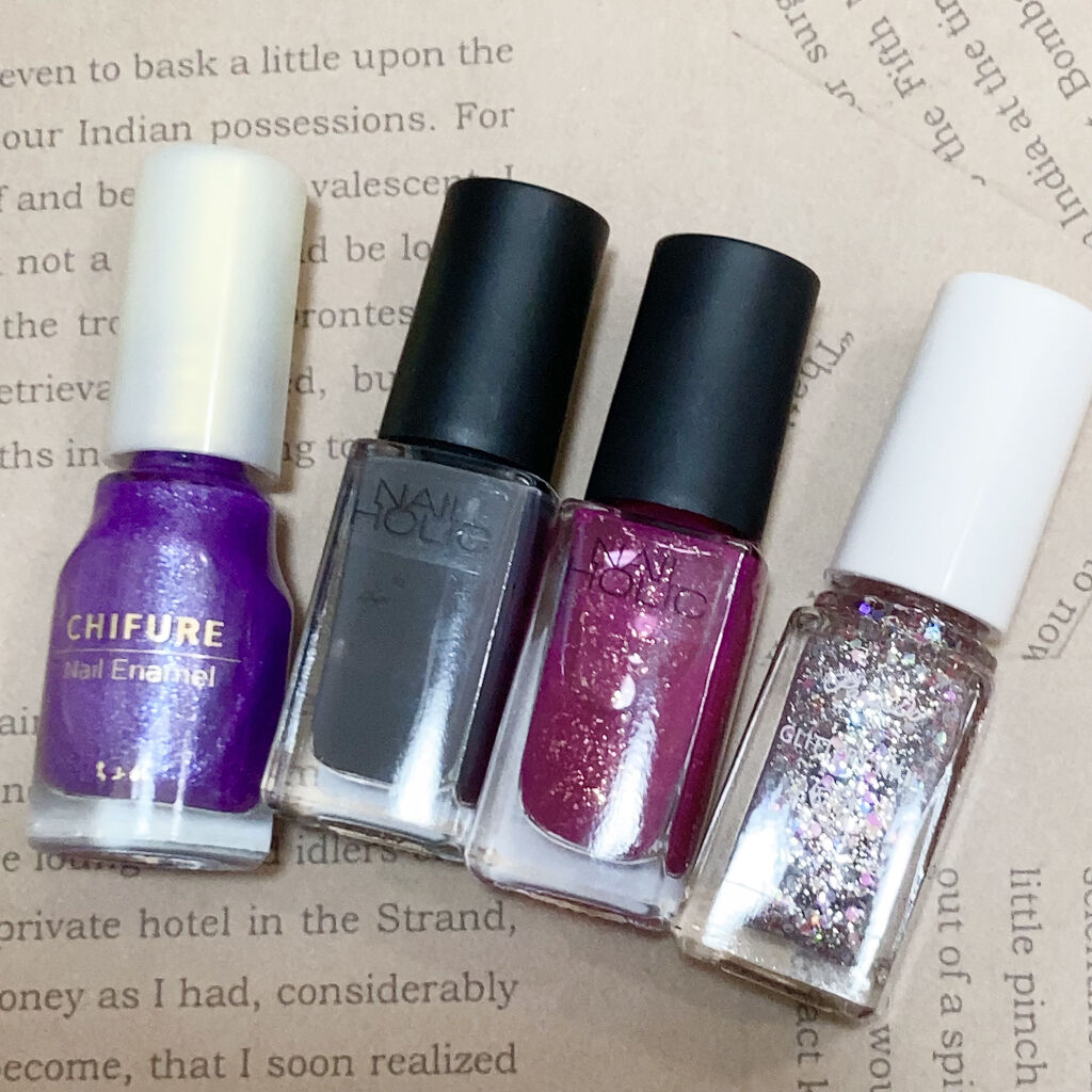 まずベースを塗ってから トップコートを塗り (使用してるものはこれ一本でOK) トップコートを塗ったら半乾きの状態で 指or使い捨てアイシャドウチップ等使用して アイシャドウをポンポンと塗ります。 塗り終えたら更にトップコートを塗って 半乾きの状態でアイシャドウを… アイシャドウ塗っただけだと、ん? ってなるけど、上からトップコート重ねると パールやラメやツヤ感が出て綺麗✦ฺ