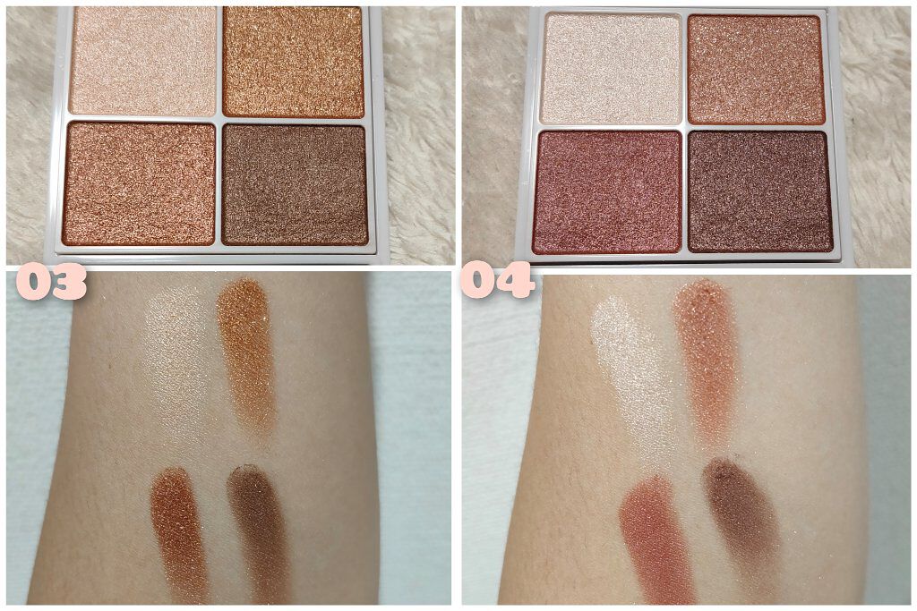 キャンメイク (M01)シエナウッド ・オレンジブラウン系アイシャドウ ・秋らしい色味で優しい目元になる ・普段使いやブラウン系好きな方におすすめ❤ ・イエベ向き (M02)チャイブリック ・ピンクテラコッタのアイシャドウ ・可愛い目元になる ・ピンク/赤みが強く、うさぎメイクやピンクメイクする方におすすめ❤ ・ブルベ向き (M03)ローズヒート ・ローズレッド系アイシャドウ ・可愛い目元になる ・ピンク/紫みが強く、うさぎメイクや闇メイクにおすすめ❤ ・ブルベ向き (M04)キューピッドペタル ・コーラルピンク系アイシャドウ ・春らしく、可愛い目元になる ・ブルベ向き