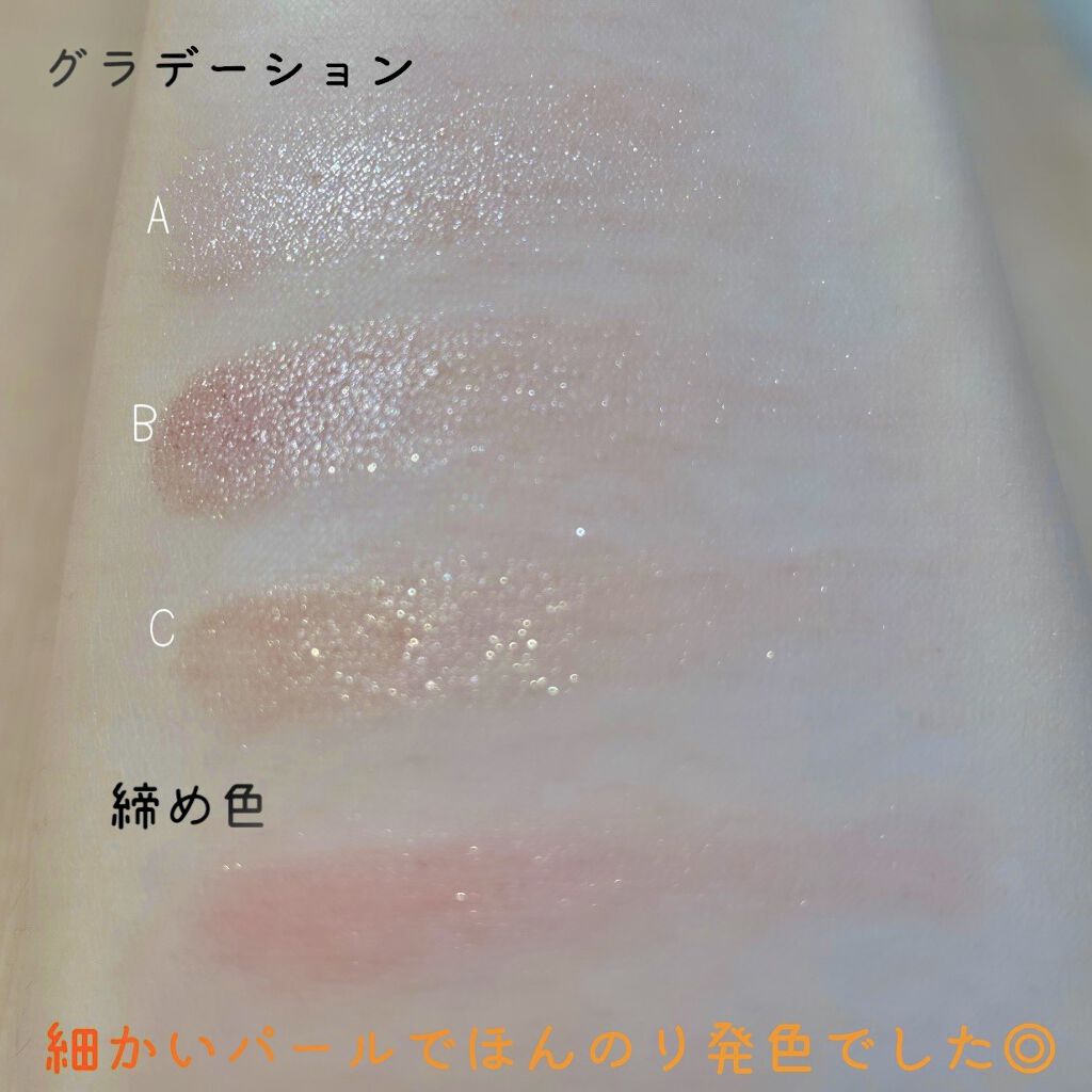 700円で買えて、しかも落ちにくく、涙袋がずっと綺麗にキープ😍 ただ、01もホワイトパールでキラキラ輝くのがたまらなかったので購入◎ 02はベージュ系でブラウンやオレンジメイク 03はピンク、パープルメイク 涙袋意外にも、アイラインの上にポンポン乗せたらラメ入りになってかわいかったです✨