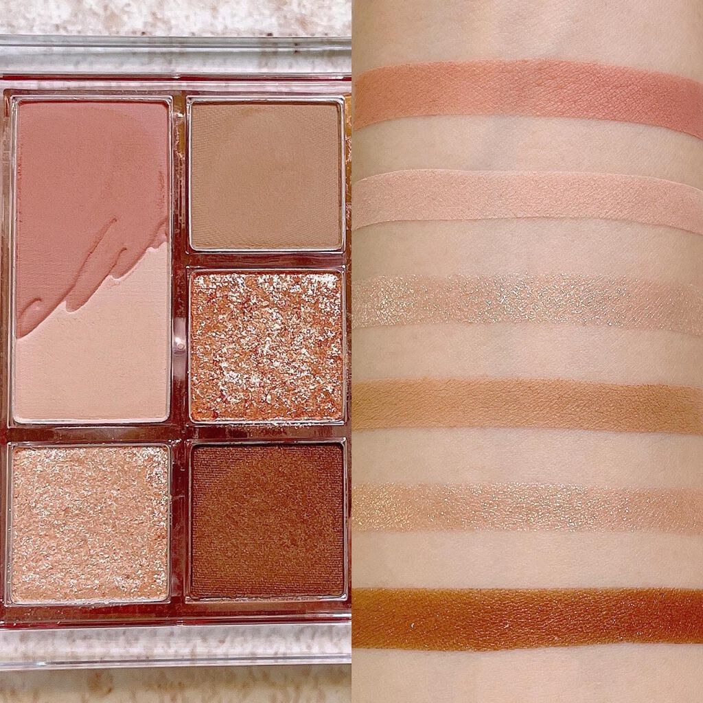 カラーバリエーションが豊富なので 使いやすいマットカラー3色に 透明感のあるパール(左下)1色というのが ブラウンパレットだけでも3種類あるので 捨て色なしでデイリーに使いやすいものばかりなので