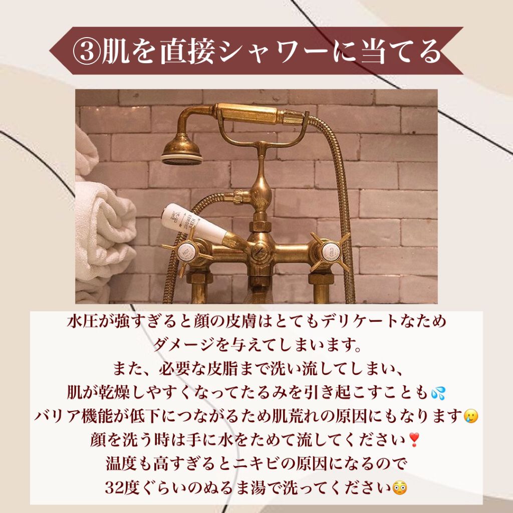 コメント失礼します!シャワーを直で顔に当ててはいけないと記していましたよね…?? 直であてない場合Rin様はどんな工夫をしていますか…?どうしたらいいか気になってしまったので💦 もし良ければ教えて貰えますかーー!ごめんなさい!