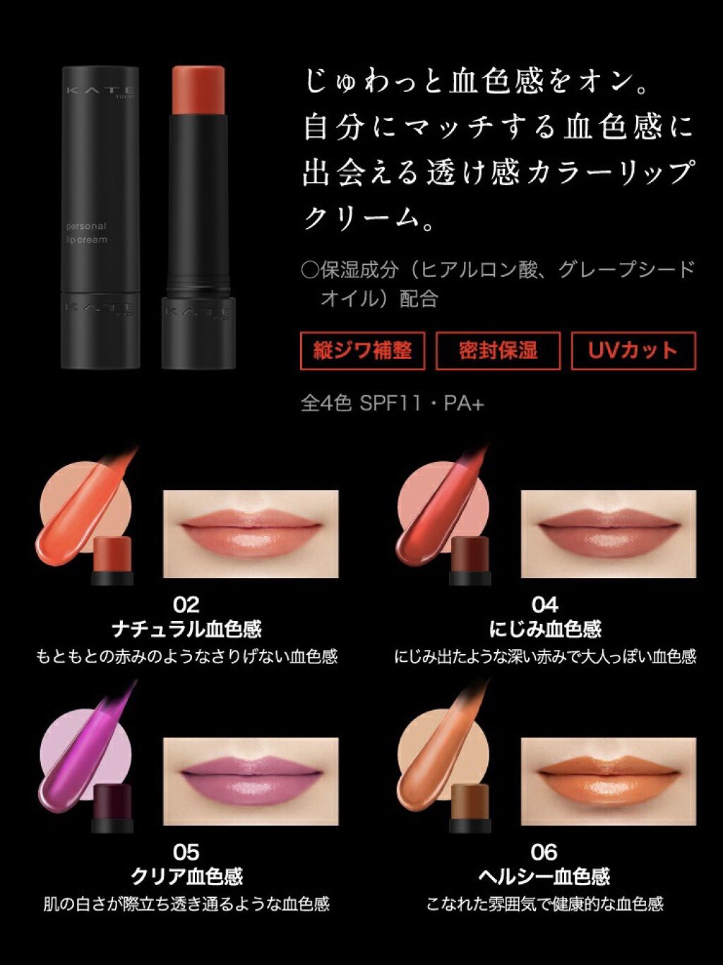 - 欲しい血色感をオンできるカラーリップ。唇の色を透かす発色で、素唇×色の掛け合わせを実現。自分にマッチする血色感に出会えるリップシリーズ。 ナチュラル血色感、にじみ血色感、ヘルシー血色感、シアー血色感、じんわり血色感の5タイプ。 光でぼかす縦ジワ補整、うるおいを閉じ込める密封保湿、UVカットの3つの機能。