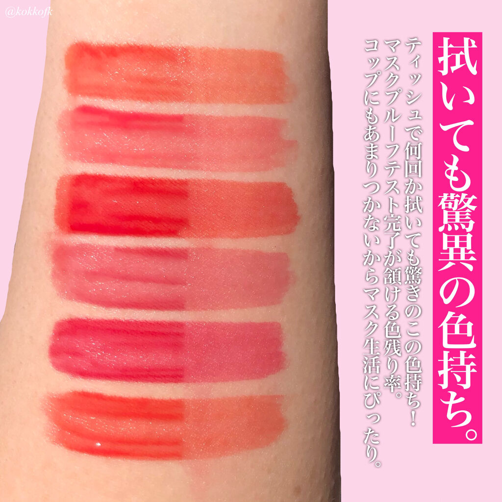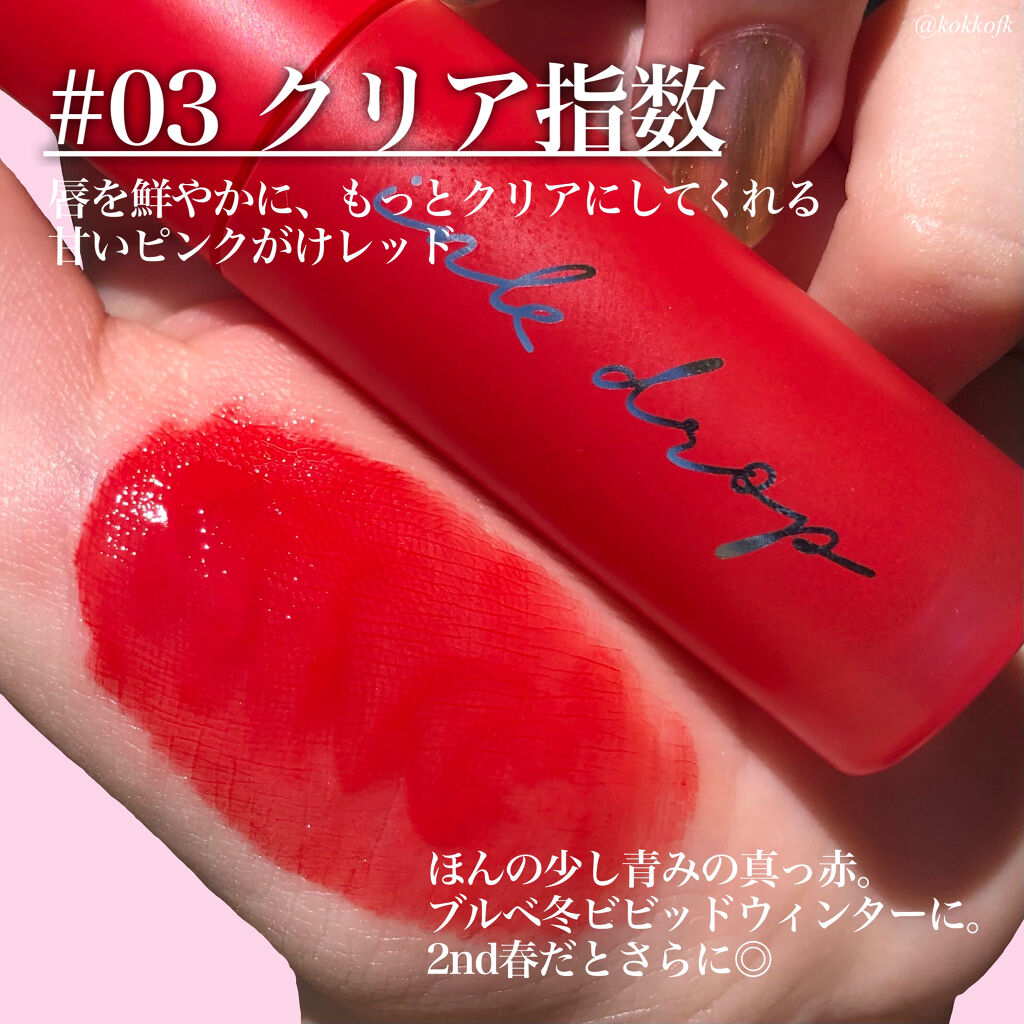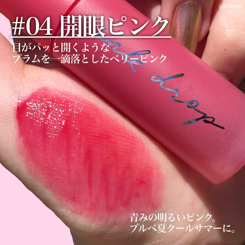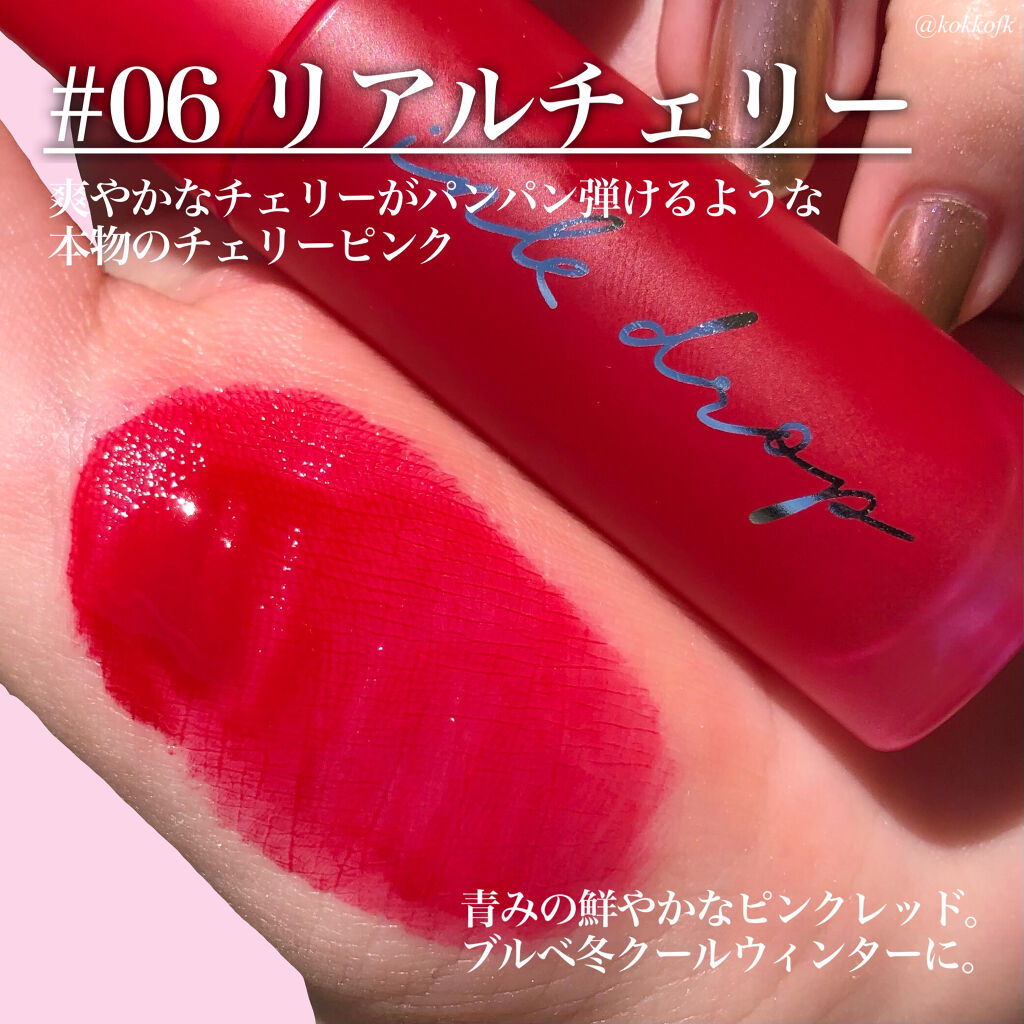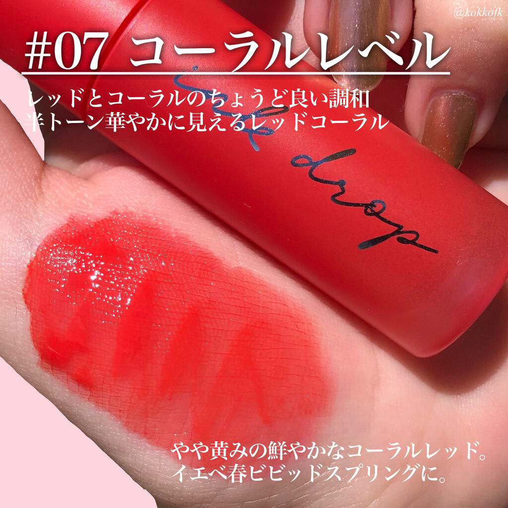 - 塗ったことを忘れるくらい軽い着け心地なのにカラーがしっかり唇に密着するインク ムード ドロップ ティント♪ 水彩画のようにクリアな発色で、重ねる程に濃くなります。 マスク プルーフ効果試験完了(一部号数のみテスト完了)でマスクに付きにくいのもうれしいポイント💛 キャンディみたいにほんのり甘い香りもします🍬
