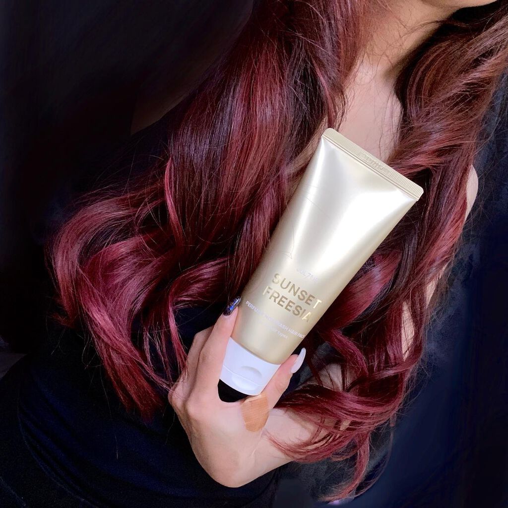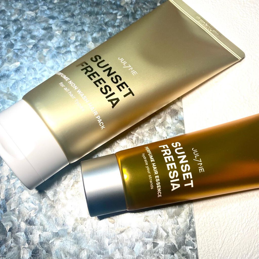 フリージアの香りと甘くみずみずしい梨の香りが作り上げる清楚なフローラルフレグランス 白色の伸びが良いクリームで軽いつけ心地、蓋を開けるとサンセットフリージアがふんわり香ります✨️ 普段は香水の匂いが強くて苦手でつけないから、ケアしながらパフューム効果もある製品は便利🌸
