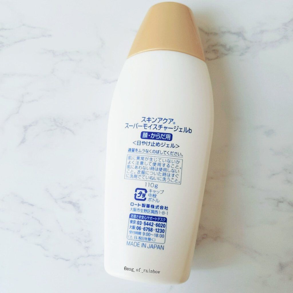 SKINAQUAスーパーモイスチャージェルcSPF50+PA+++私が夏に愛用している日焼け止めです。日焼け止めのきしきし感が苦手でできるだけ塗っている時のストレスがない日焼け止めを見つけました。乳液のようなテクスチャーでさらっと伸びます。つ...