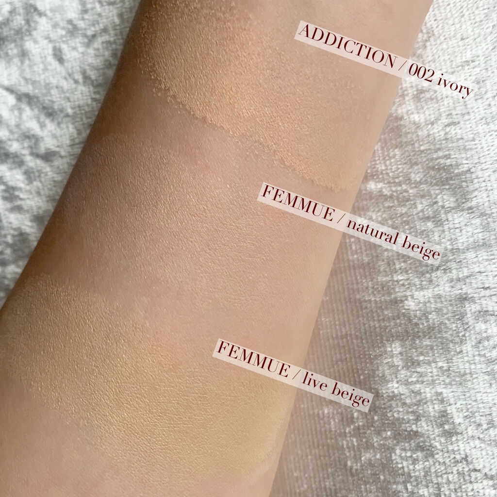 光を反射させ、素肌のような“素肌膜”をつくるクッションファンデーション。 超薄膜の素肌感覚で使用できるテクスチャーで、適度に光を透過するヌードカバーリフレクトパウダー配合で肌と一体化したような自然な仕上がり。 カバー力はかなりある⭐︎ 毛穴、赤み、クマもしっかり隠してくれてコンシーラーが無くても大丈夫でした◎ 公式サイトを見ると①003Ivory Beige②002 Ivory③004Pure Beigeの順が人気色みたい。 私は004 Pure Beigeにしました!