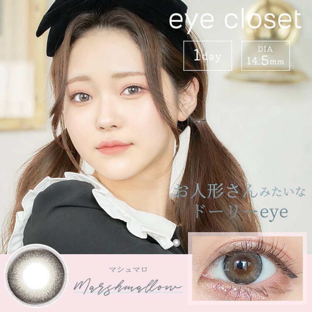 - ナチュラル&色素薄い系カラコンの『eye closet』 ナチュラルな発色でも14.5mmのレンズが目元を華やかにしてくれます。 ツヤのある発色がモテナチュラルな甘い瞳を演出