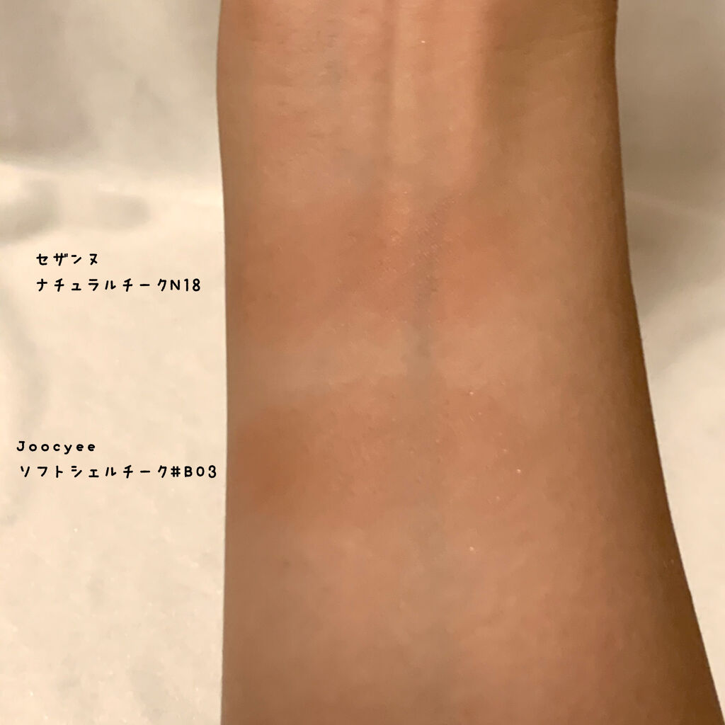 Joocyeeは質がいいのはもちろんですが、何よりもパケが綺麗でテンションが上がります! こちらのチークはマットだけれど、粉っぽ過ぎずしっとりとしています。 ハイライトを使ってポイントでキラキラさせたいので、チークにはラメやパールが入っていないほうが好みの私的に、とても使い勝手がよく感じました。 モーニングミストの色味は、淡くミルキーでありつつ、肌なじみのいいピーチなので使い勝手もとても良かったです。