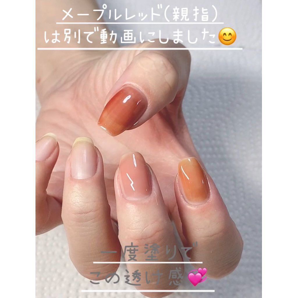 ジェルミーワンの新色たちニュアンスがとってもやりやすい🙌シアーなのに深みのある素敵カラーです🥺 メープルレッドのチラチララメが可愛すぎるっ…! そしてキャラメルヌガーの透明感と艶よ…!😇✨