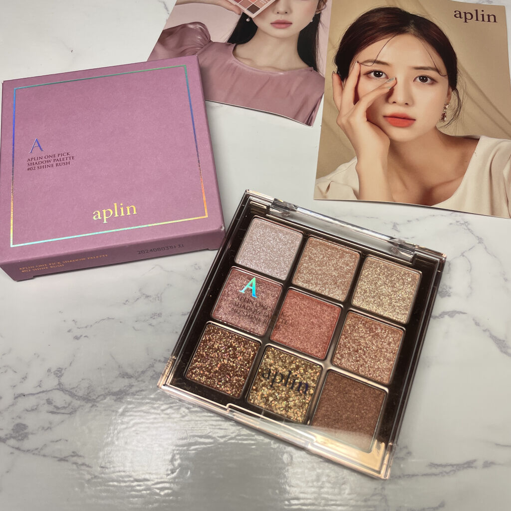 全色ラメ入り! APLIN ワンピックアイシャドウパレット 02 シャインラッシュ とってもかわいくて虜になっちゃう最強ラメパレット! サラッとしている細かいラメからザクザクで密着力がかなり高めのラメまでたくさん! 個人的お気に入りカラーは左上のシルバーと真ん中のピンクラメ! 1度ぜひ使って欲しい!!