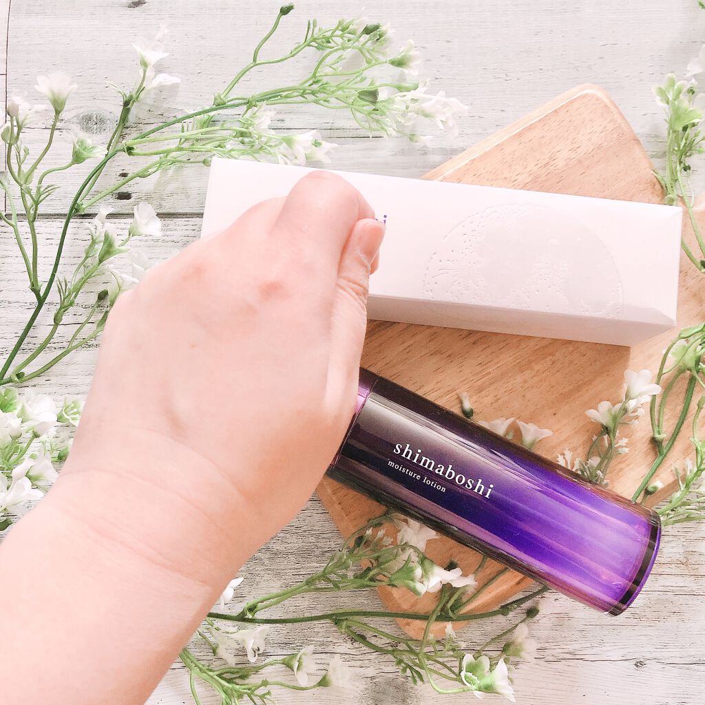 *この度shimaboshiモイスチャーローション(120ml/6200円)をお試しさせていただきました。モイスチャーローションは肌の土台に、潤いを巡らし、届けて、蓄えることでふっくらとしたもちもちのお肌へ導いてくれます。モイスチャ...