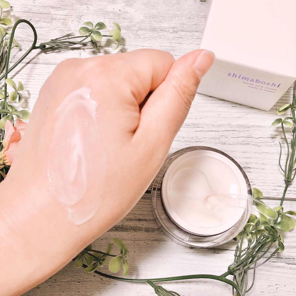 この度shimaboshiラスターリッチクリーム(50g/8500円)をお試しさせていただきました。乾燥によるエイジングサインに、ハリ・ツヤ・うるおいをあたえる贅沢な保湿クリームです。1つ6役の高機能オールインワンクリームとしても使えます...