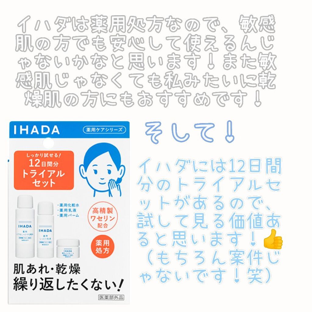 Hinaです!今回はIHADA薬用シリーズについて紹介していきます!薬用ローション私はとてもしっとりを使ってます!名前の通りすごくしっとりします!手のひらに出したときはさらさらとしてます。肌によく浸透してちゃんと保湿できているな〜と思えます!...