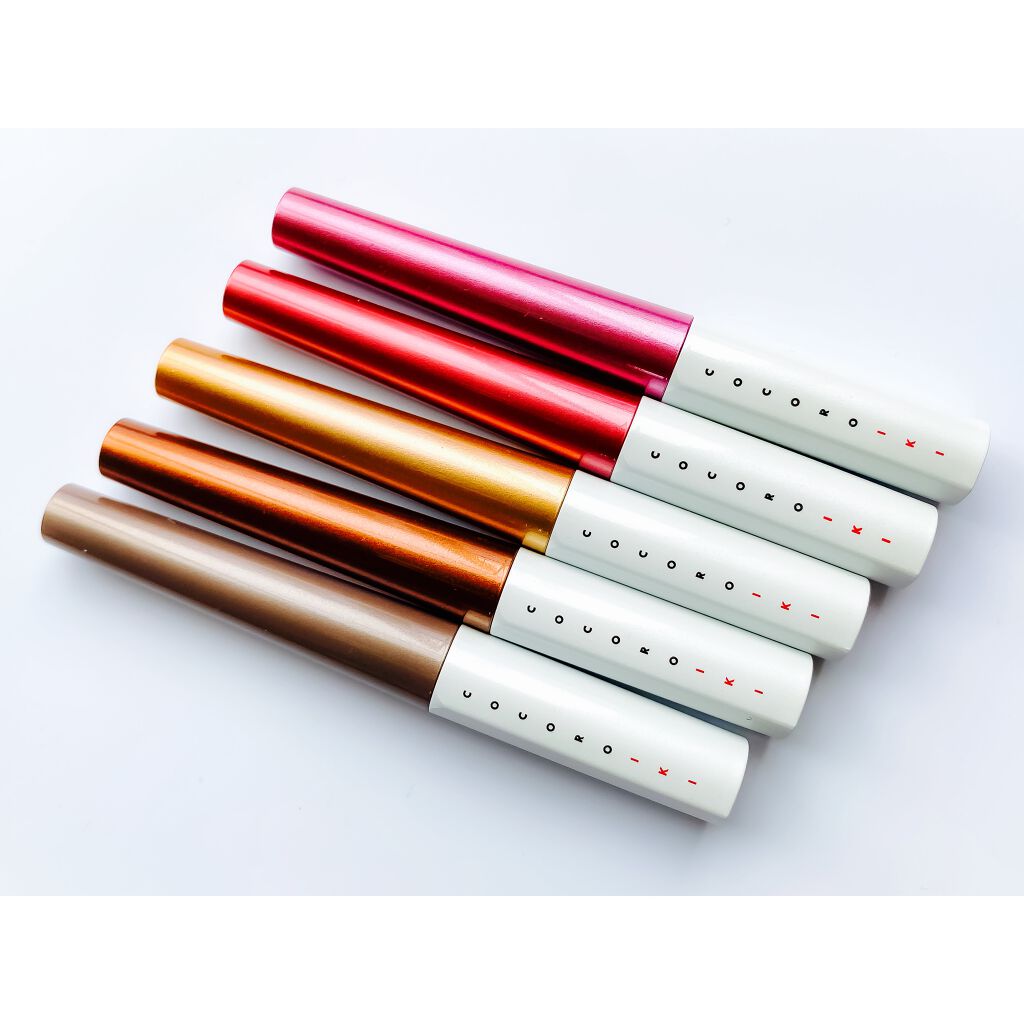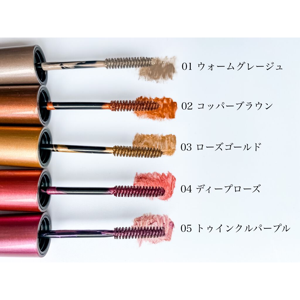 - <01 ウォームグレージュ> 水、アクリレーツコポリマー、ミツロウ、カルナウバロウ、BG、ステアリン酸、ペンチレングリコール、ワセリン、TEA、セテアリルアルコール、アクリレーツコポリマーアンモニウム、加水分解コンキオリン、ヒドロキシエチルセルロース、アラビアゴム、イソステアリン酸PEG-20ソルビタン、ステアリン酸グリセリル、トリステアリン酸スクロース、フェノキシエタノール、カーボンブラック、マイカ、酸化鉄、酸化チタン、シリカ、水酸化AI、AI <02 コッパーブラウン> 水、アクリレーツコポリマー、ミツロウ、カルナウバロウ、BG、ステアリン酸、ペンチレングリコール、ワセリン、TEA、セテアリルアルコール、アクリレーツコポリマーアンモニウム、加水分解コンキオリン、ヒドロキシエチルセルロース、アラビアゴム、イソステアリン酸PEG-20ソルビタン、ステアリン酸グリセリル、トリステアリン酸スクロース、フェノキシエタノール、カーボンブラック、マイカ、酸化鉄、酸化チタン <03 ローズゴールド> 水、アクリレーツコポリマー、ミツロウ、カルナウバロウ、BG、ステアリン酸、ペンチレングリコール、ワセリン、TEA、セテアリルアルコール、アクリレーツコポリマーアンモニウム、加水分解コンキオリン、ヒドロキシエチルセルロース、アラビアゴム、イソステアリン酸PEG-20ソルビタン、ステアリン酸グリセリル、トリステアリン酸スクロース、フェノキシエタノール、赤226、酸化鉄、シリカ、AI <04 ディープローズ> 水、アクリレーツコポリマー、ミツロウ、カルナウバロウ、BG、ステアリン酸、ペンチレングリコール、ワセリン、TEA、セテアリルアルコール、アクリレーツコポリマーアンモニウム、加水分解コンキオリン、ヒドロキシエチルセルロース、アラビアゴム、AMPD、イソステアリン酸PEG-20ソルビタン、ステアリン酸グリセリル、トリステアリン酸スクロース、フェノキシエタノール、カーボンブラック、カルミン、マイカ、酸化鉄、酸化チタン、シリカ、酸化スズ <05 トゥインクルパープル> 水、アクリレーツコポリマー、ミツロウ、カルナウバロウ、BG、ステアリン酸、ペンチレングリコール、ワセリン、TEA、セテアリルアルコール、アクリレーツコポリマーアンモニウム、加水分解コンキオリン、ヒドロキシエチルセルロース、アラビアゴム、イソステアリン酸PEG-20ソルビタン、ステアリン酸グリセリル、トリステアリン酸スクロース、フェノキシエタノール、カーボンブラック、マイカ、酸化鉄、酸化チタン、シリカ、合成フルオロフロゴパイト、コンジョウ、酸化スズ