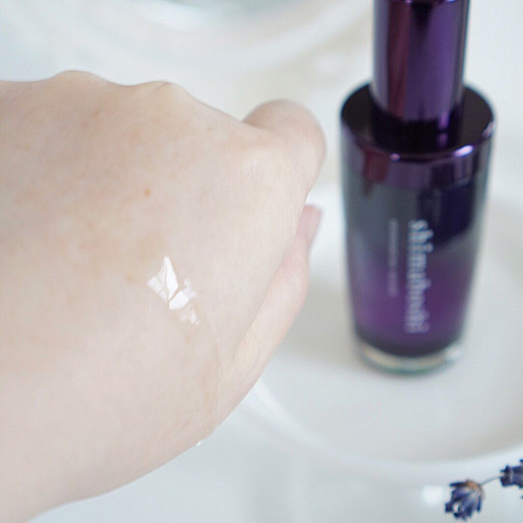 肌に潤いを与え、シミ・そばかすを防いでくもりのない肌へ導く美容液 いちごシロップみたいな見た目が好き、ビタミン12由来の色なんだそう とろみがあるけどメイク前にも使えるのがいいなと思うベタつきにくいテクスチャー