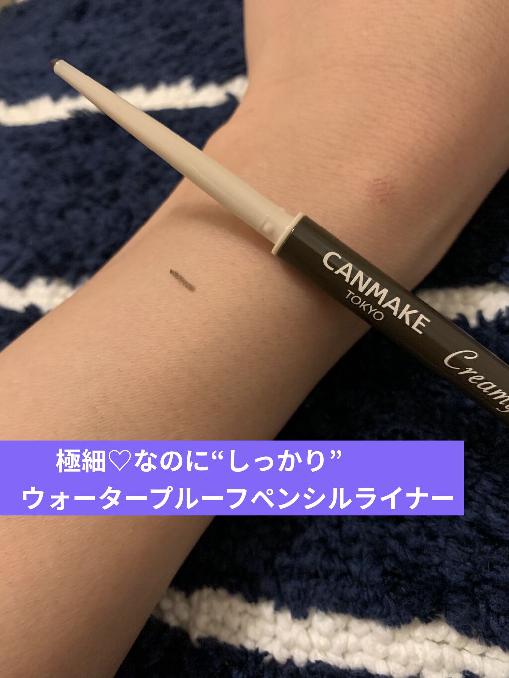 描き心地がよくてスルスルかけます! 私は目尻にホリがあるのでペンシルタイプのライナー使うと極太になっていつも失敗していたのですがこちらは1.5mmの極細ということもあって、綺麗な仕上がりになりびっくりしました😳 持ちが最高で、こすってもこすっても落ちません笑 クレンジングしてやっと落とせると言う脅威の持続力… このお値段でこのクオリティは…! キャンメイクさん一生ついて行きます🏃♀️笑