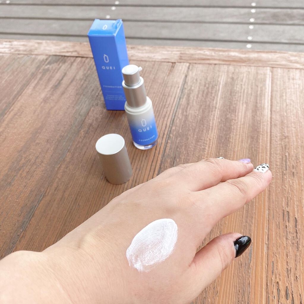 QUEIカラーチェンジファンデーションを提供していただきました。SPF50+・PA++++はじめは白色のクリームですが、肌にのせてクルクルと馴染ませると摩擦と体温に反応して色が変わり、肌色になじむファンデーションですファンデーション選びで見た...