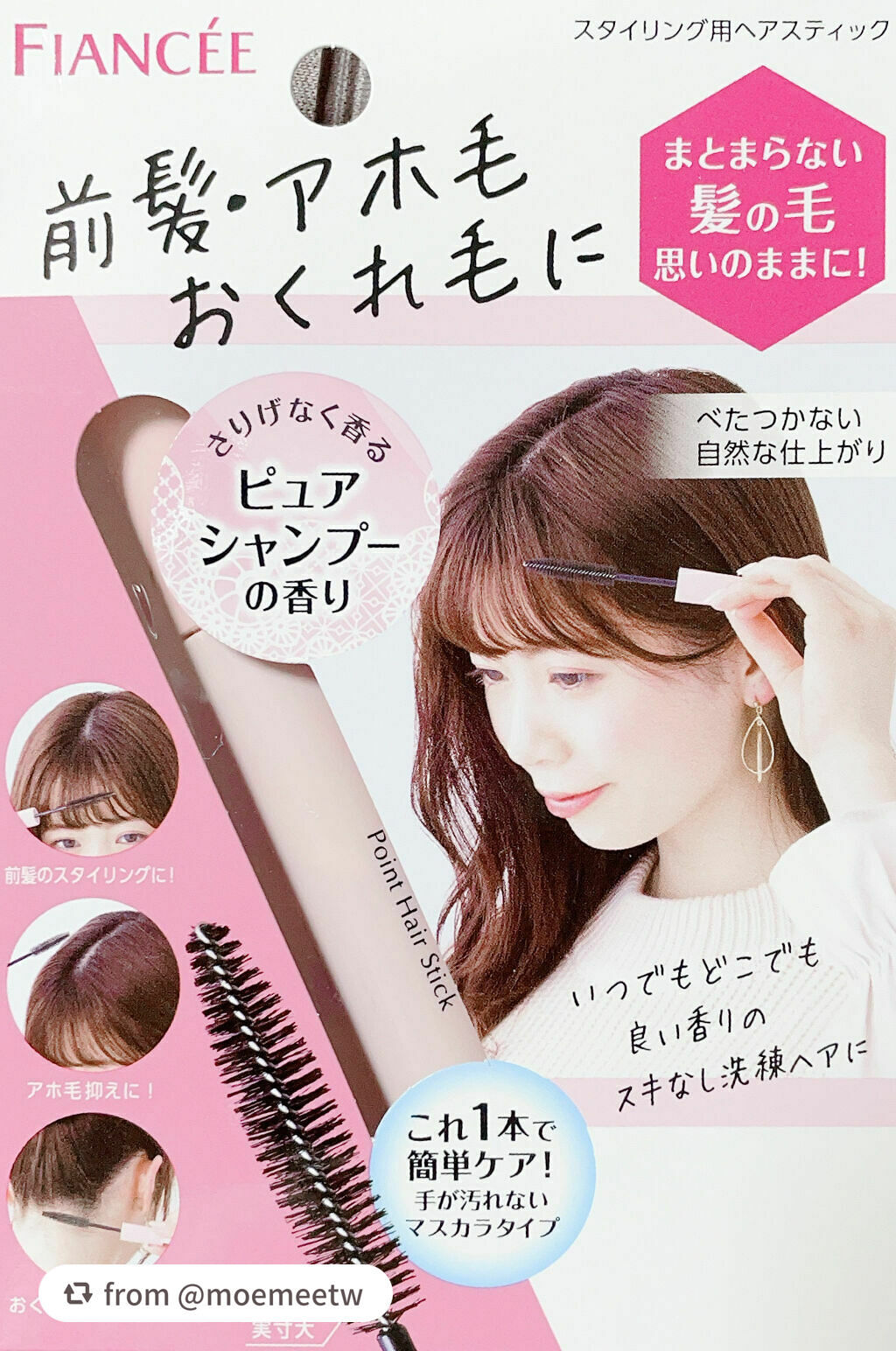 - 前髪・アホ毛・おくれ毛を、サッとひと塗りでまとめる!ナチュラル仕上げのスタイリング用ヘアスティック。さりげなく香るピュアシャンプーの香り。 ●手が汚れないマスカラタイプ。 ●広範囲に塗れる大きめブラシ採用。 ●コンパクトで持ち歩きに最適! ●べたついたり固まったりせず、何も塗っていないような仕上がりをキープ。 ●重ね塗りをしても束になりにくい。 ●白くなりにくい。 ●キューティクルケア成分、毛髪補修成分配合