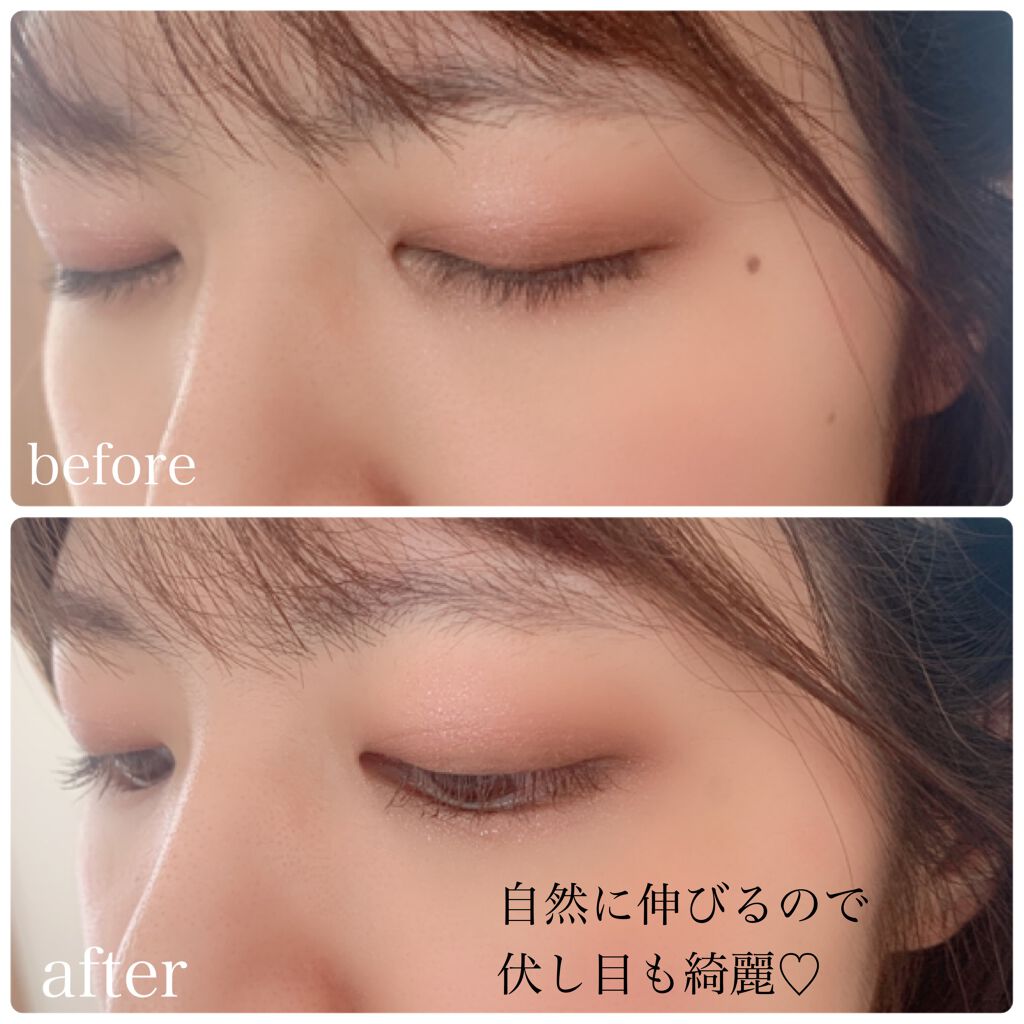 繊維が入っていてサッと塗るだけでめちゃくちゃ伸びる! これ、下地??ってくらいに伸びます笑 その後に、マスカラをつけても繊維が落ちることもなくキープ! 長さとボリュームの両方欲しい方に特におすすめ! まつ毛のバサバサ感があまり好きじゃなく自然にロングしたい方には向いてない!
